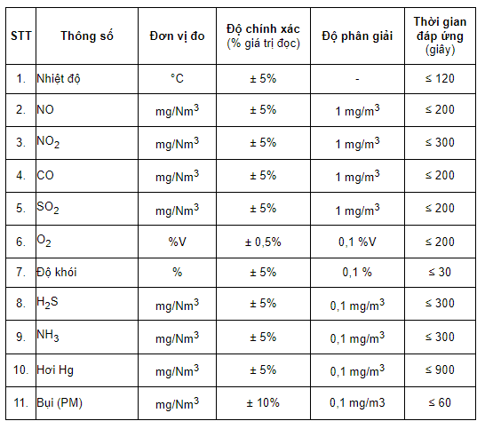 Hệ thống giám sát khí thải online về cơ bản sẽ phải đo được các thông số chính như sau:
